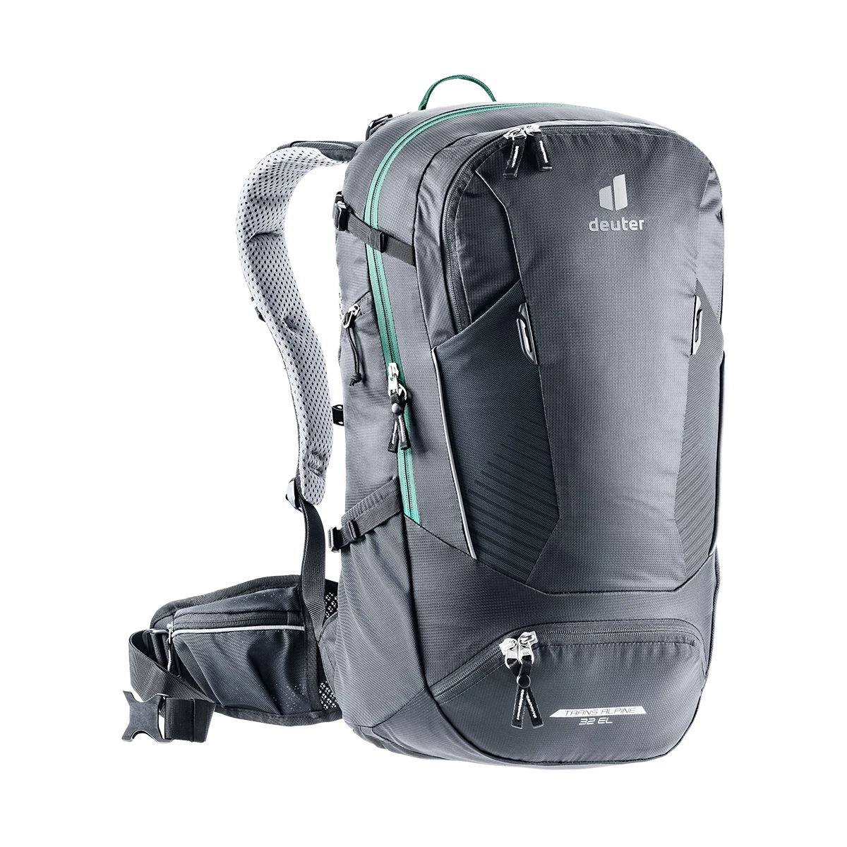 The TRANS ALPINE 32 EL by deuter is the go-to backpack for all cycle tourers looking for a securely fitting multi-day pack with comfortable back ventilation and clever storage options. The torso length of this EL backpack version is specifically adapted to the needs of taller people for a perfect fit. Another new feature is the helmet attachment system. Simply clip your helmet to your backpack when getting off your bike for a stop.