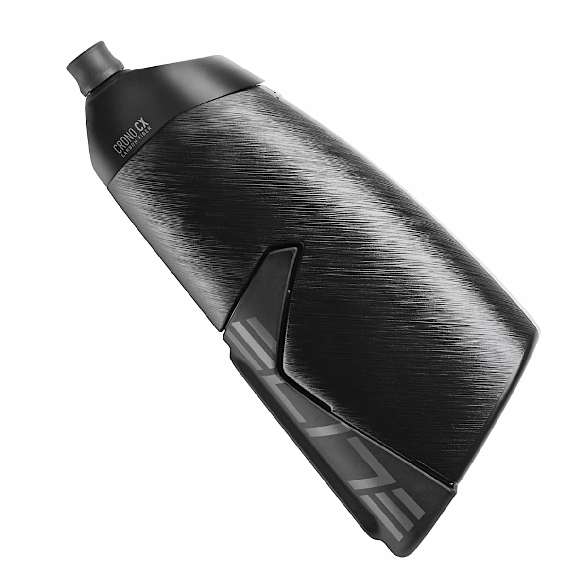 The Elite Kit Crono CX Carbon water bottle/holder set has a new look! It consists of a grippy aero water bottle and a specially designed, tailor-made carbon bottle cage. The goal while developing the set was to create an extraordinary drinks bottle and holder design with maximum aerodynamic and lightweight properties.