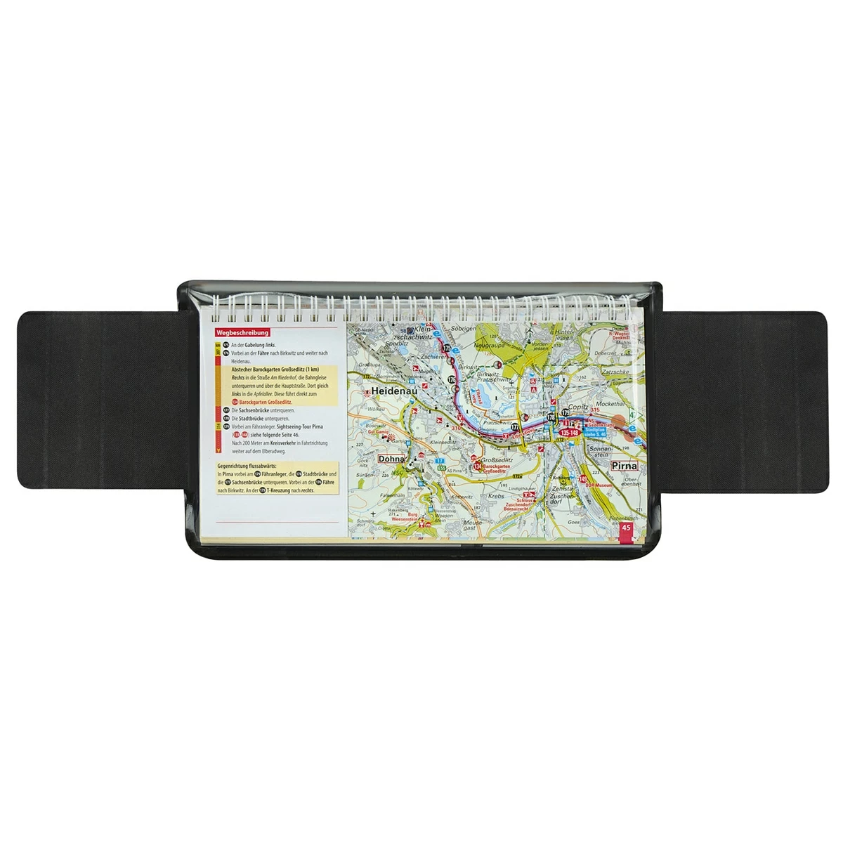 • Waterproof map, smartphone, and tablet pocket foldable up to 24 x 24 cm, secured with velcro