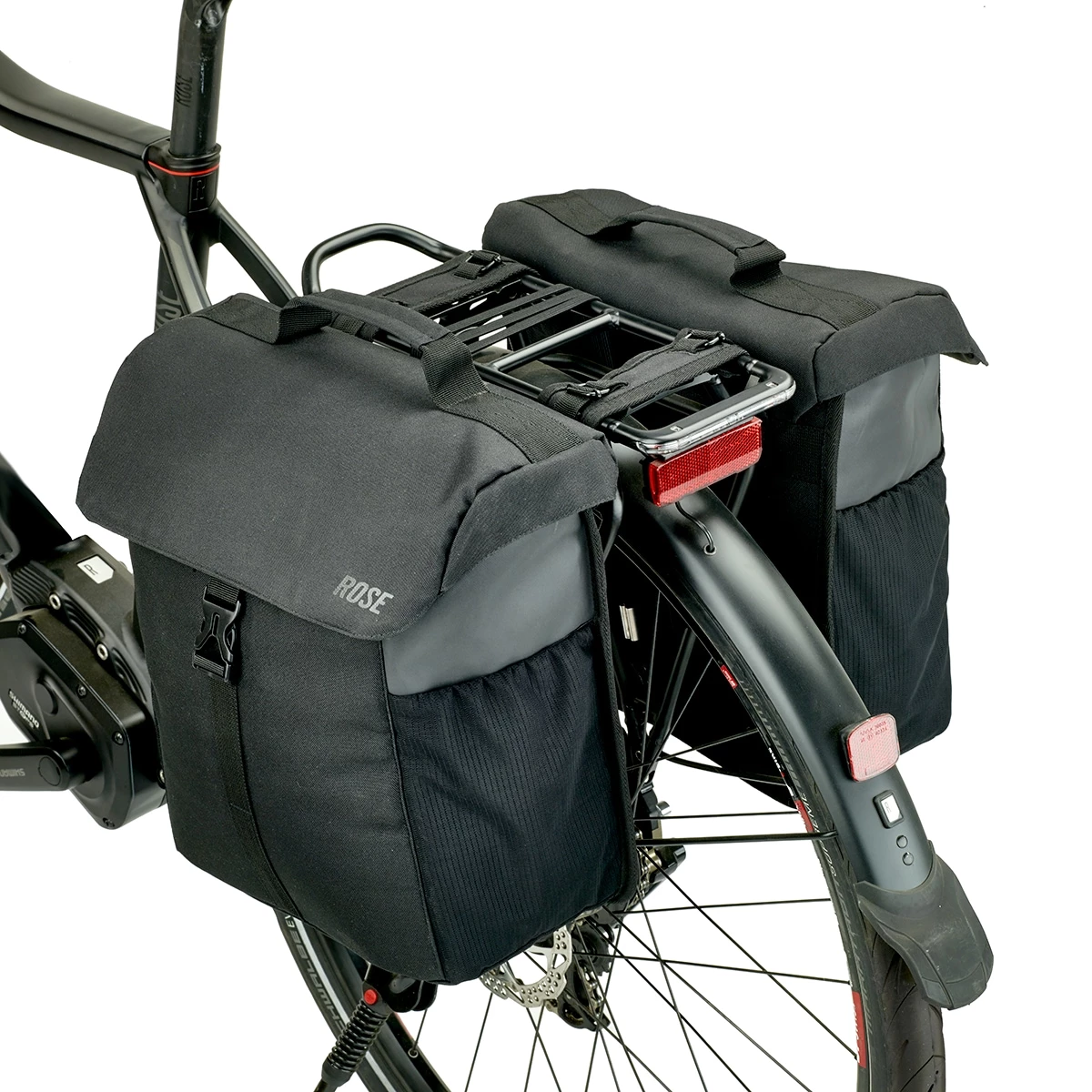 The REFLECT double pannier by ROSE offers plenty of stowage for your next tour. This double bag can be securely attached to almost all standard pannier racks, either with straps, optional MIK adapter or optional Racktime adapter.