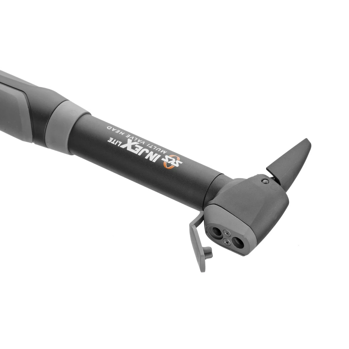 Effective, fast and easy. This is how this little all-rounder works! However, the Injex Lite compact pump with a universal Multi Valve head connection does not only stand out for its easy handling and its compact size. The low weight of only approx. 150 g also makes this mini pump a practical accessory for cyclists that can be mounted under or instead of a bottle cage thanks to a 2-point pump holder. The integrated clamp lever guarantees an especially secure valve connection.