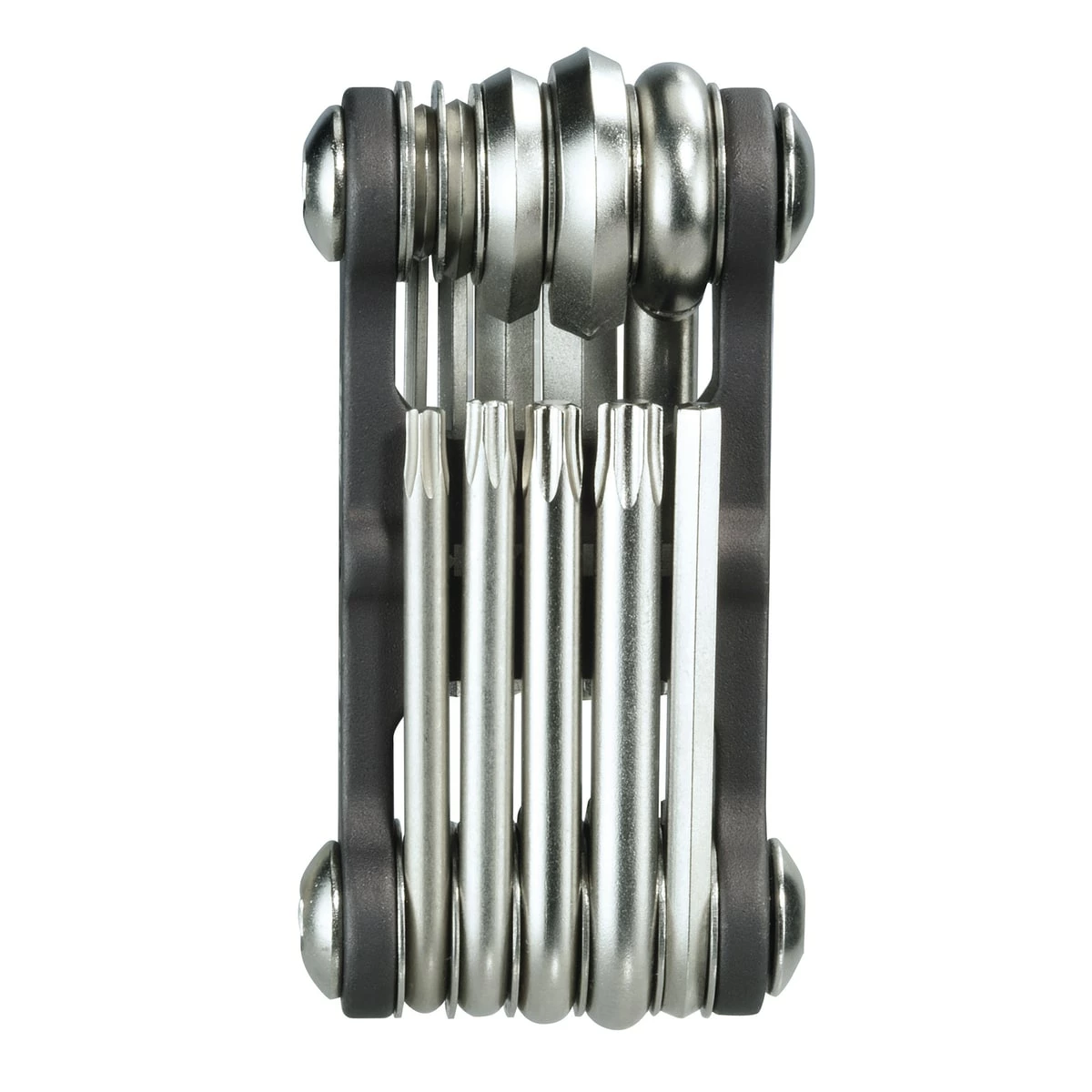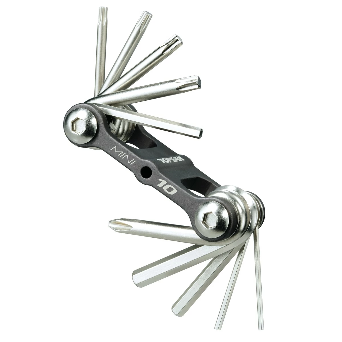 One tool kit for all! The Mini 10 tool by Topeak consists of a cross-head screwdriver, five hex wrenches and four star wrenches. Everything you need is inside a robust aluminium body and can be stored inside the included neoprene bag to protect it from dust and moisture when not in use.
