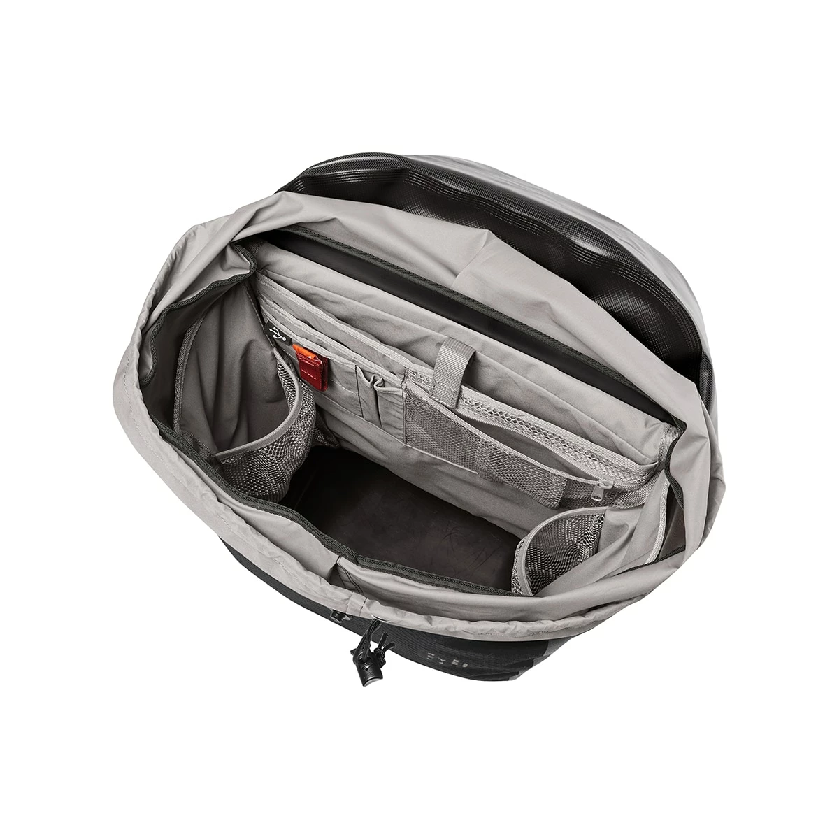In the large main compartment of the bike bag, there is plenty of room, for example, for the just-in-case jacket, lunch box, water bottle, a laptop up to 13.3″ and more. The integrated business organiser with zipped pocket and compartments keeps your office essentials in place.