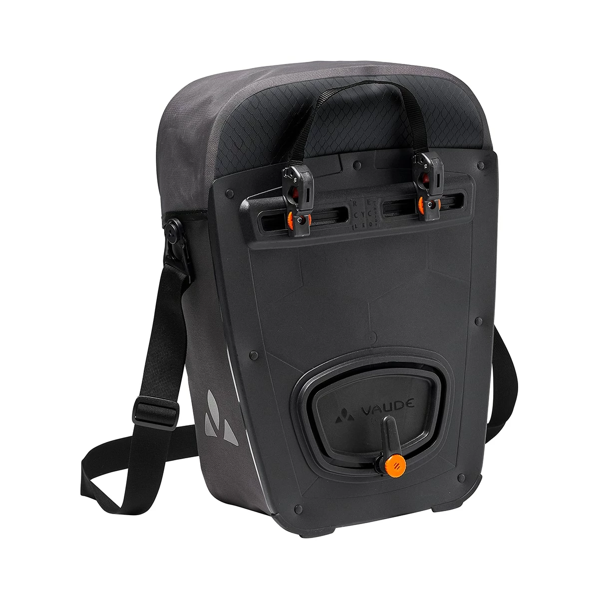 The AQUA COMMUTE SINGLE pannier by VAUDE offers plenty of storage space, making it ideal for long workdays where you have to be ready for anything.